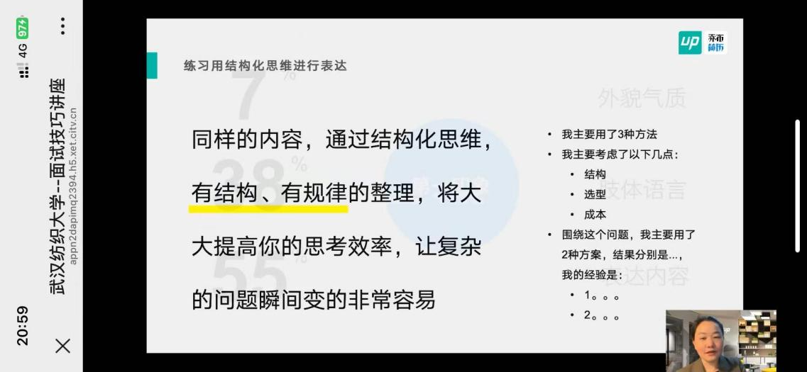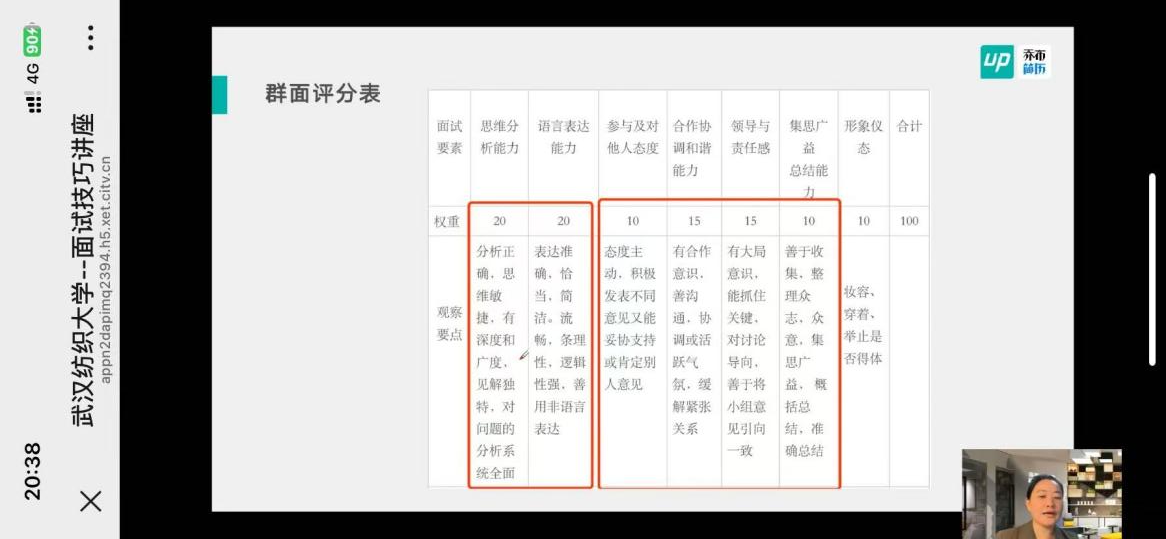 讲座期间,沈锴围绕面试全流程核心要点展开系统讲解,重点剖析了AI面试、单面、群面三种主流面试类型的核心特征与应对逻辑。她指出,AI面试在金融、快消、互联网等行业应用日益广泛,其核心侧重于语义分析与多模态综合评估;单面聚焦个人与岗位的适配度考察,涵盖HR面试、专业面试、总监面试等关键环节;群面则多见于金融、咨询、市场等领域相关岗位招聘,核心考察应聘者的团队协作能力与问题解决能力。